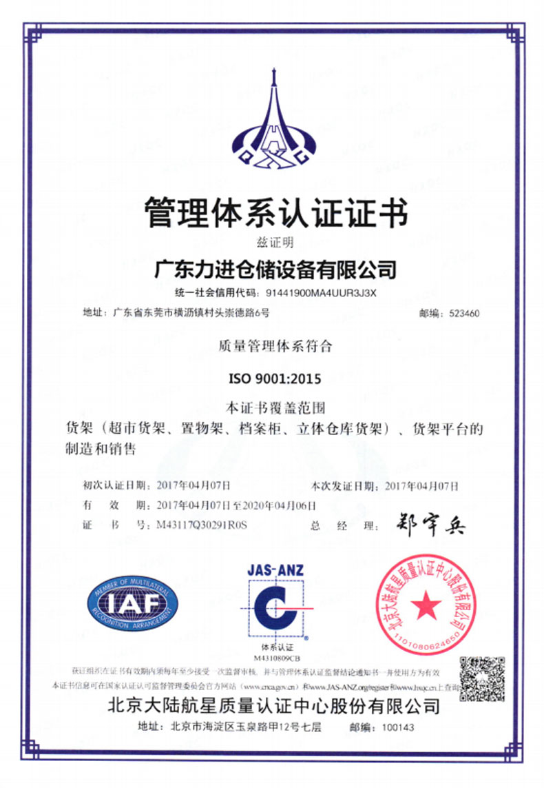 ?2016年5月 更名為廣東力進(jìn)倉(cāng)儲(chǔ)設(shè)備有限規(guī)公司,搬遷至東莞市橫瀝鎮(zhèn)村頭工業(yè)區(qū),占地面積12800平方米。